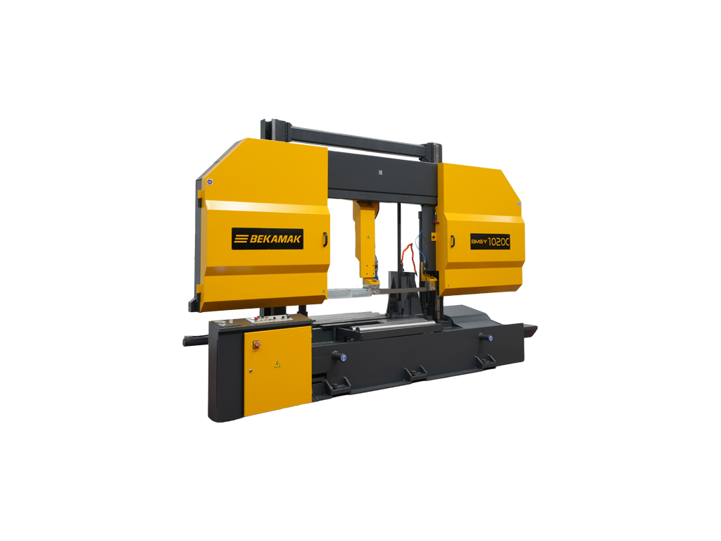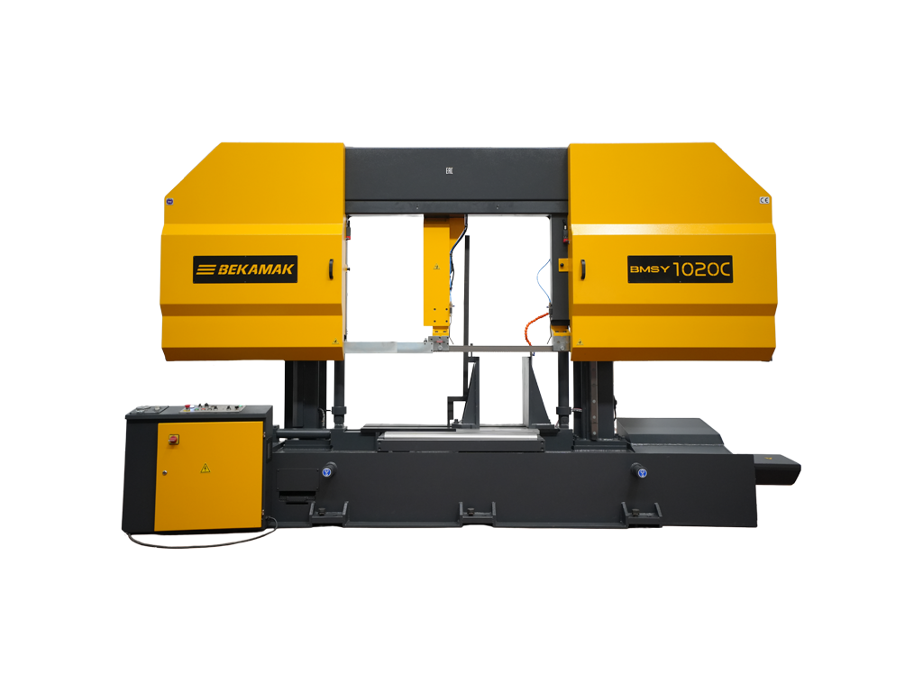 Полуавтоматический ленточнопильный станок Beka-Mak BMSY 1020C предназначен для резки профильных заготовок, пакетной резки заготовок небольшого диаметра, а также резки сплошных заготовок (кругляков и поковок) диаметром до 75% от номинального размера. Полуавтоматический ленточнопильный станок двухколонного типа используется для резки заготовок диаметром до 1300 мм.